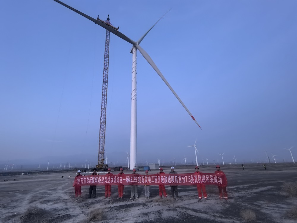 新疆風(fēng)能(néng)有限責任(rèn)公司達阪城(chéng)苜蓿台風(fēng)電場首台風機(jī)順利完(wán)成吊裝