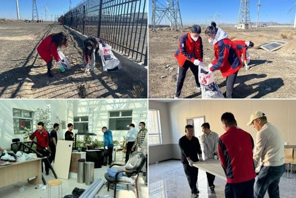 活(huó)動通知一經發布,公司各黨支部積極(jí)響應,全體(tǐ)黨員對活動展現出極高的熱情。25日下午,公司黨員幹部(bù)精神飽滿地集合出(chū)發,前往達阪城(chéng)風電場。到達目的地後,所有人分成兩組,分別對(duì)場站內部和(hé)外(wài)部進行清(qīng)潔。大(dà)家分工明確、幹勁十足,對(duì)場站內(nèi)部的桌椅、設備(bèi)進行規整、清潔,對(duì)場站周邊(biān)的垃圾、石塊等進(jìn)行全麵掃除,不放過任何一個清潔死(sǐ)角。十月的戈壁寒風呼呼作響,但寒冷(lěng)的天氣澆不滅火熱的心,大家熱火朝天地打掃著場區的衛生,用(yòng)一(yī)次次彎腰踐行(háng)著(zhe)“生態優先、綠色發展”的理念,使場區環境煥然一新,忙碌的身影形成了一道靚麗的風(fēng)景線。活動的最後,大家合影留(liú)念,記錄下了這一難忘(wàng)的時刻。