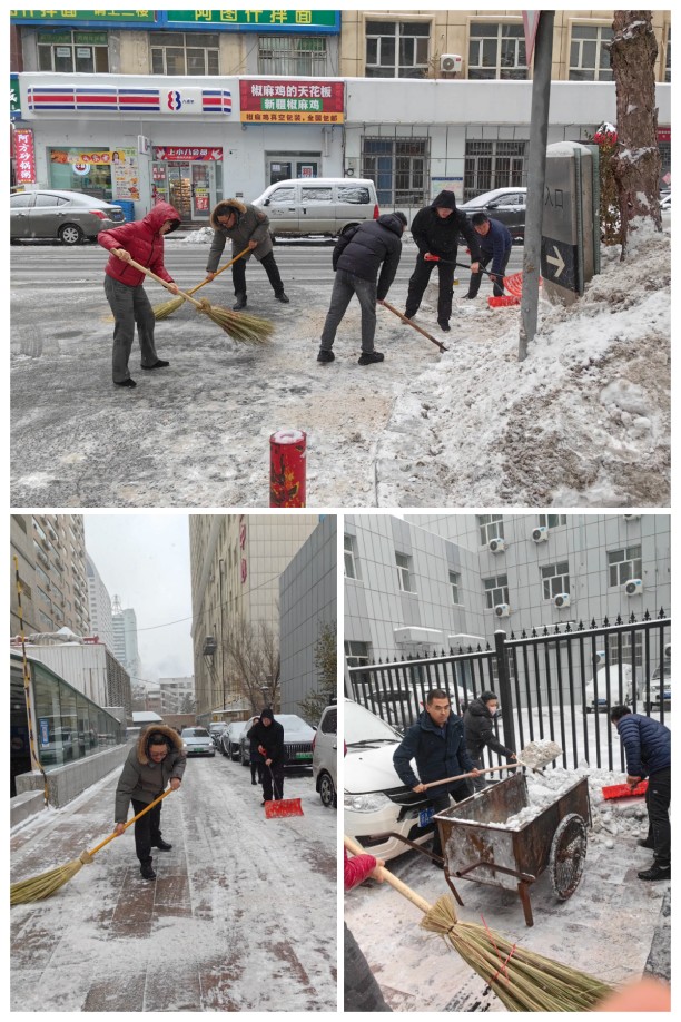 公(gōng)司黨員(yuán)誌(zhì)願者(zhě)一齊出動,清掃沿街商鋪路麵積(jī)雪,誌願者們手持推雪(xuě)板、掃帚等除雪工具,精神抖擻地奔赴公司周邊(biān)的積雪路段。盡管天氣寒(hán)冷,積雪深厚,但這絲毫沒有影響誌願(yuàn)者們的熱情和幹(gàn)勁。