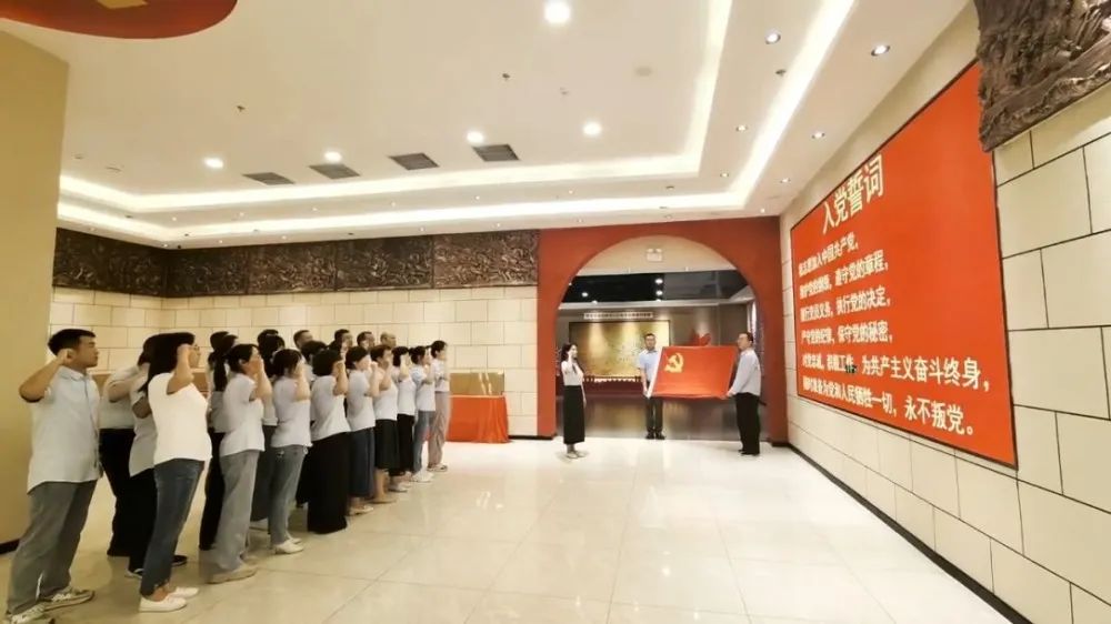 “我(wǒ)誌願加入中國共產黨…”活動開始,全(quán)體黨員莊嚴肅穆、整齊列隊,麵對鮮紅的黨旗,高舉(jǔ)右拳,重溫入黨誓詞。一句(jù)句鏗鏘有力的誓詞在現場響起,每一位黨員(yuán)的聲音都凝聚著對信仰的堅守。鮮紅的黨(dǎng)旗在前方(fāng)指引,高舉的右拳是初(chū)心的見證,整齊的隊列是信(xìn)仰的凝聚,每一(yī)次(cì)對入黨誓詞地重溫,不僅是對入黨(dǎng)初心的回望,更是對使命擔當的重申。