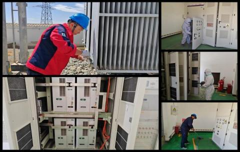 工作開展(zhǎn)前,運維人員嚴格依照既定工作方案,遵循安全規程,認真辦理相關工作票,並提前準備好所需工具,為後(hòu)續工作做了充分準備。在停電(diàn)窗口期,檢修人員頂著戈壁灘的(de)滾滾熱浪,爭(zhēng)分奪秒地推進SVG一、二次側設(shè)備清灰(huī)作業。他們身(shēn)著厚重的工作服,佩戴防護手套與護目鏡,全身心投入到緊(jǐn)張的工作中。作業時,他們小心翼翼地拆卸設(shè)備外殼,手持(chí)高壓(yā)氣泵專注清理每個縫隙(xì),遇到頑(wán)固積(jī)垢,便用小(xiǎo)刷子配合(hé)氣泵仔(zǎi)細清掃。對於新濾網,他們仔細(xì)核(hé)查尺寸與規格,確認匹配後再精準安裝。同時,用(yòng)酒精棉細致擦拭元件表麵,連邊角縫隙都不放過,每一項操作都力求精準規範。針對灰塵密集(jí)部位,更是進行反複清除,絕不放過任何一處灰塵聚集(jí)點。