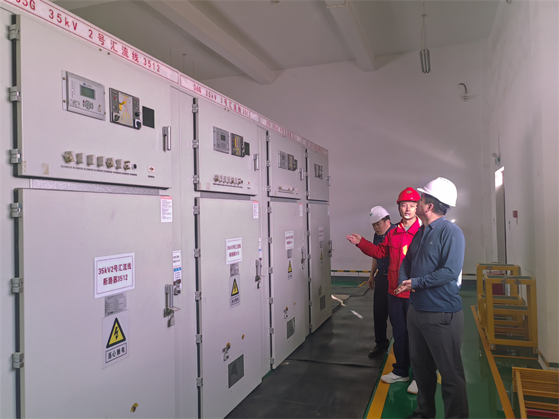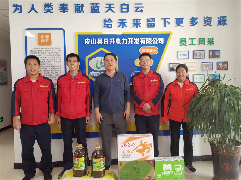 黃樂(lè)同誌一行首先來到場站,實地(dì)了解和田區域(yù)光伏電站的生產(chǎn)運行(háng)情況,對和田區域光伏電站的整體生產情況表示肯定。他強(qiáng)調,場站要嚴格(gé)落實(shí)安全生產責任,落實安全防範措施,做好光伏發電設備(bèi)的日常維護保養工作,幹好每一件事,發好每一度電,為公司完成年(nián)度目標添(tiān)磚加(jiā)瓦(wǎ)。隨後,黃樂同誌代表公司向大家送上了問候與祝福,並發放(fàng)慰(wèi)問品,讓大家感受到了公司的(de)關懷。