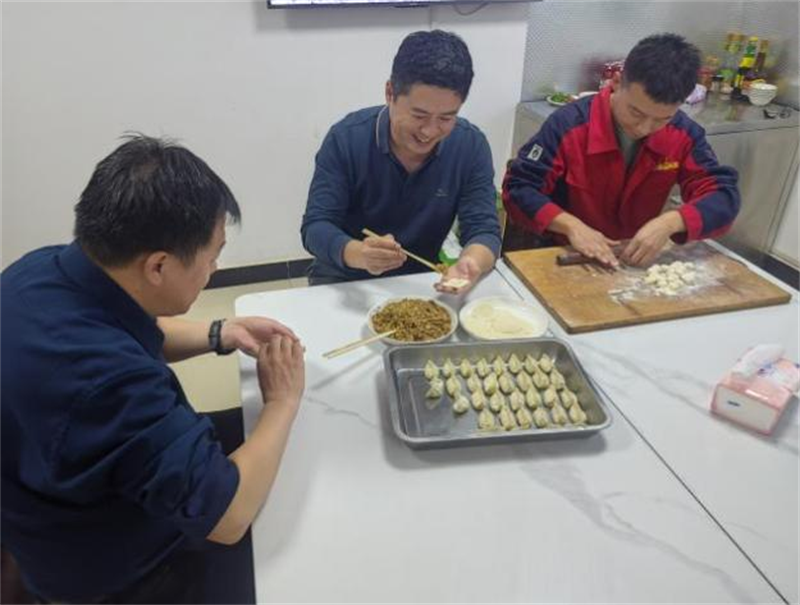 活動最後,黃樂同誌(zhì)和第四(sì)黨支部的黨員以及電站職工一起(qǐ)包了餃子,大家和麵、調餡,分工有序,忙而(ér)不亂,一邊包著餃子,一邊還分(fèn)享(xiǎng)著自己(jǐ)包餃(jiǎo)子的心得,大家邊說(shuō)邊幹,互相幫忙,活動現場熱(rè)鬧非凡。一(yī)盤盤餃子順利下鍋,大家(jiā)一同坐下吃餃子,分享著勞動成果,熱騰騰的餃子吃在嘴裏,暖在心頭,現場一片(piàn)歡聲笑(xiào)語、其樂融融。